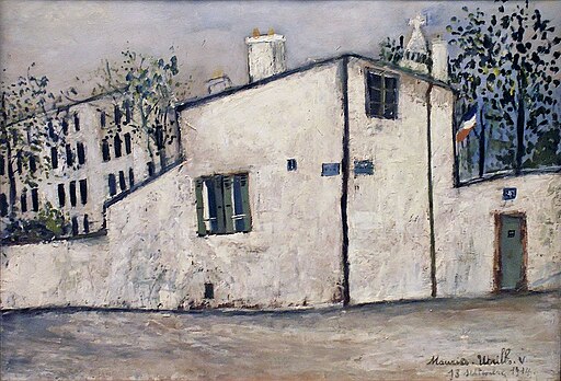 •「白の時代」の風景画:モンマルトルの地面から採れる石膏などの石材を砕いて白い絵具に混ぜ、厚塗りをするという独特の手法。建物の壁の質感をリアルに表現しています。